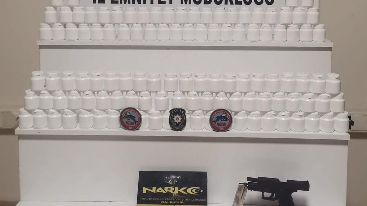 Balıkesir Asayiş Şube Müdürlüğü Motosikletli Polis Timleri Büro Amirliği ekipleri tarafından şüphe üzerine durdurulmak istenen bir aracın dur ihtarına uymayarak kaçmaya çalışması sonrası kısa süreli takip yaşlandı. Takip altında polis ekiplerinin tüm ihtarına uymayan şahıslar yol üzerinde 3 farklı noktaya araçta bulunan maddeleri attıkları tespit etti. Kaçtıkları sırada kaza yaparak duran şahıslar kısa sürede kontrol altına alarak araçta kaçış güzergahında arama başlattı. Yapılan arama çalışmaları sonucunda 6 bin 819 adet sentetik ecza uyuşturucu ve uyarıcı maddesi ve bir ruhsatsız tabanca ele geçirildi. Kovalamaca sonucu yakalanan 4 Şüpheli şahıs gözaltına alınırken, uyuşturucu veya uyarıcı madde imal ve ticareti suçundan Narkotik Suçlarla Mücadele Şube Müdürlüğü tarafından adli tahkikat başlatıldı. Ayrıca sürücüye dur ihtarına uymamak ve trafik güvenliğini tehlikeye düşürmekten 3 bin 160 TL para cezası uygulandı.