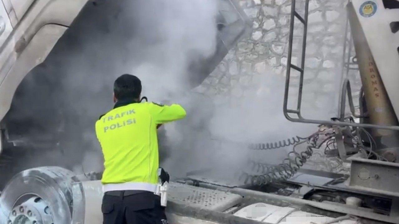 Samsun’da seyir halindeki çekicinin motor bölümünde çıkan yangın, polis ekiplerinin hızlı müdahalesi sayesinde büyümeden söndürüldü.
