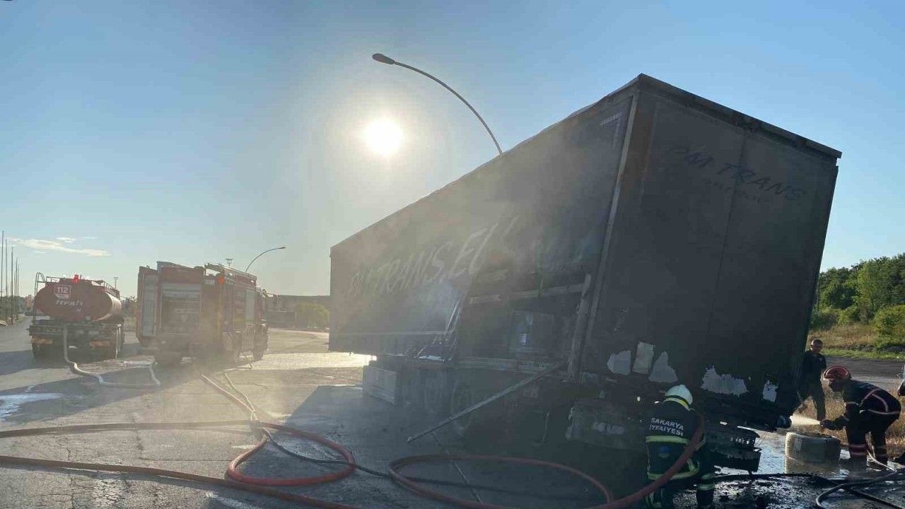 Anadolu Otoyolu’nun Sakarya geçişinde Polonya’ya gittiği öğrenilen tel yüklü tırın dorsesinde çıkan yangın itfaiye ekiplerince söndürüldü.