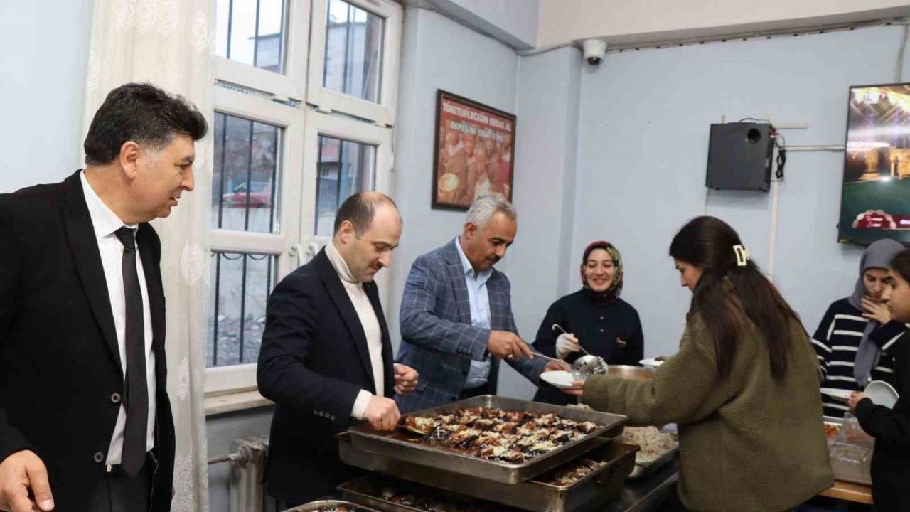 Erzurum’un Oltu ilçesinde Yusuf Ziya Bey Kız Anadolu Lisesi pansiyonunda iftar programı düzenlendi, protokol mensupları öğrencilere yemek dağıttı.