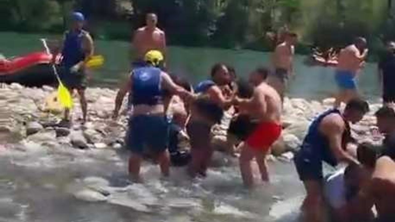 Antalya’da su sporları merkezinde can yeleği giymeyen bir grup ile kendilerini yelek giymeleri konusunda uyaran grup arasında kavga çıktı. Suyun içinde yaşanan kavgada tekme ve yumrukların yanı sıra rafting kürekleri de kullanıldı.