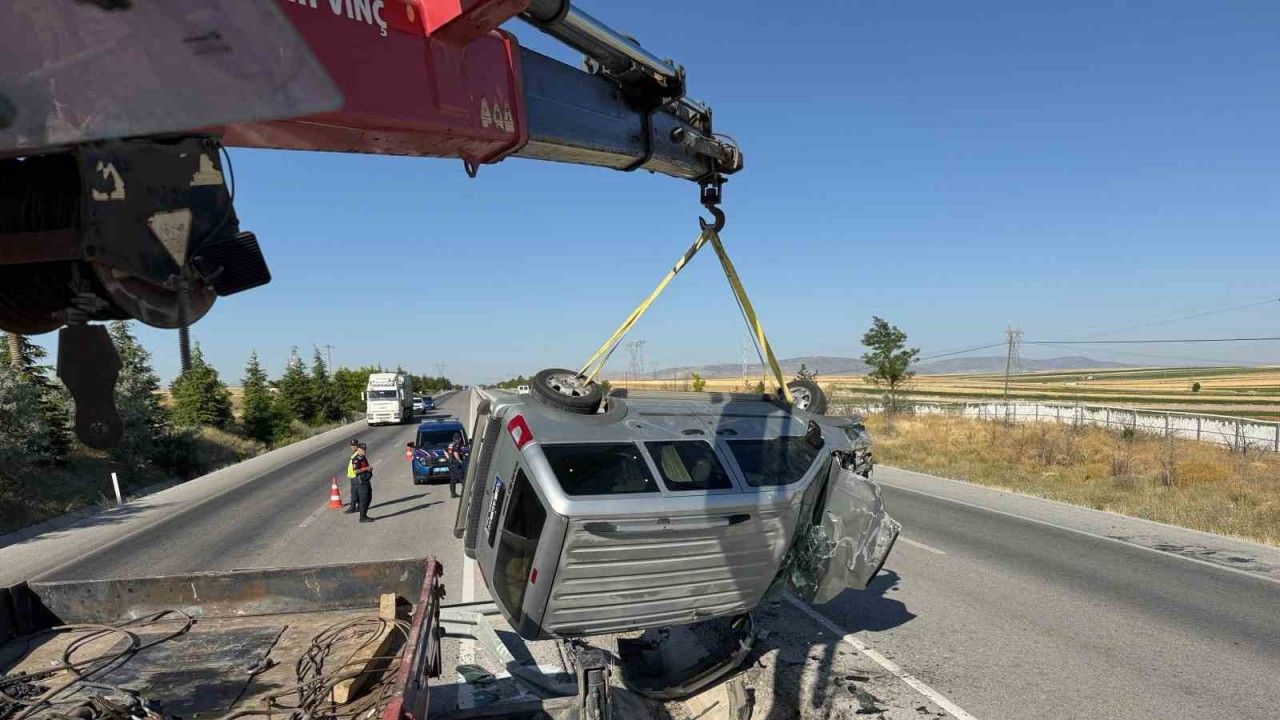Afyonkarahisar’da kontrolden çıkarak orta refüje devrilen hafif ticari araçta 2 kişi yaralandı.
