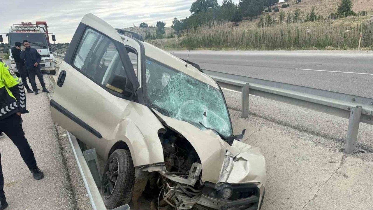 Afyonkarahisar’da kontrolden çıkarak yol kenarındaki refüje giren hafif ticari araçta 3 kişi yaralandı.