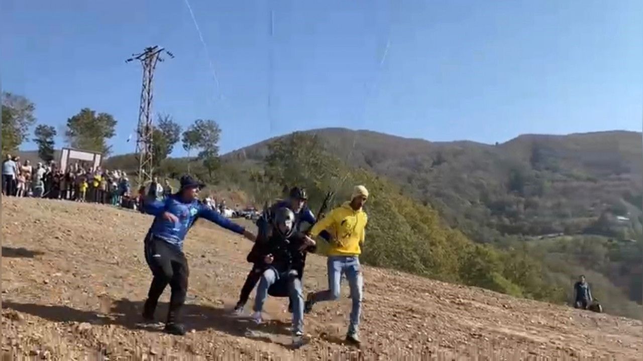 Osmaniye’nin Düziçi ilçesinde düzenlenen Dumanlı Yaylası Festivali’nde, paraşütçünün kayaya çarparak kaza geçirdiği anlar kameraya yansıdı.