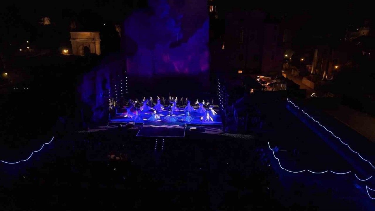 Roma’nın en önemli kültürel yaz etkinliklerinden biri olan ve Kolezyum tarafından düzenlenen ‘Musica in Venere’ konser serisinin kapanışını yapan etkinlik, Venüs ve Roma Tapınağı’nın atmosferinde sahnelendi. İtalya’nın tanınmış sanatçılarının da sahne aldığı prestijli seride 14 müzisyen ve 16 semazenle yaklaşık bir saat süren etkinlik icra edildi.