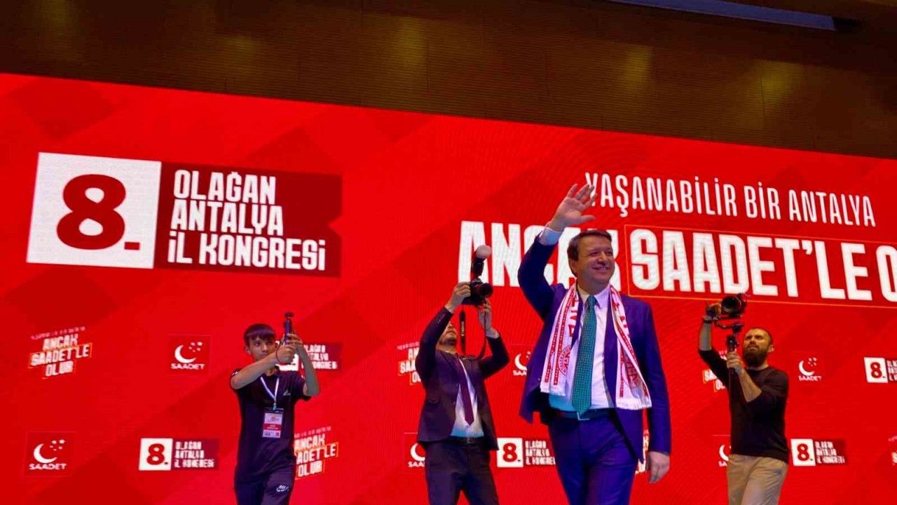 Antalya’nın Kepez ilçesindeki Mimar Sinan Kongre Merkezi’nde düzenlenen Saadet Partisi Antalya 8. Olağan İl Kongresi’ne Genel Başkan Mahmut Arıkan da katıldı. Kongrede tek listeyle gidilen seçimde mevcut İl Başkanı Mehmet Fatih Tekin yeniden seçildi.
