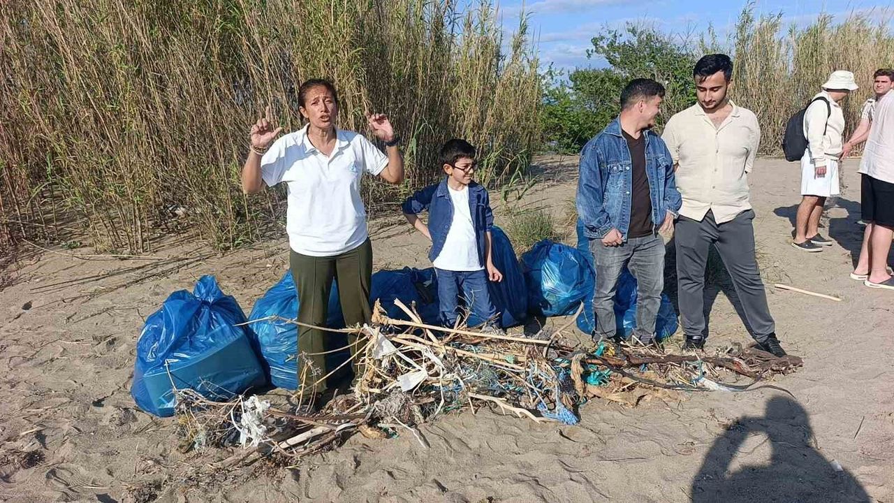 Manavgat'ta Mendirek Yarımadasında üniversite öğrencileri tarafından toplanan çöpler arasındaki balık ağı, ip ve poşetlerden oluşan çöp yığını görenleri hayrete düşürdü.