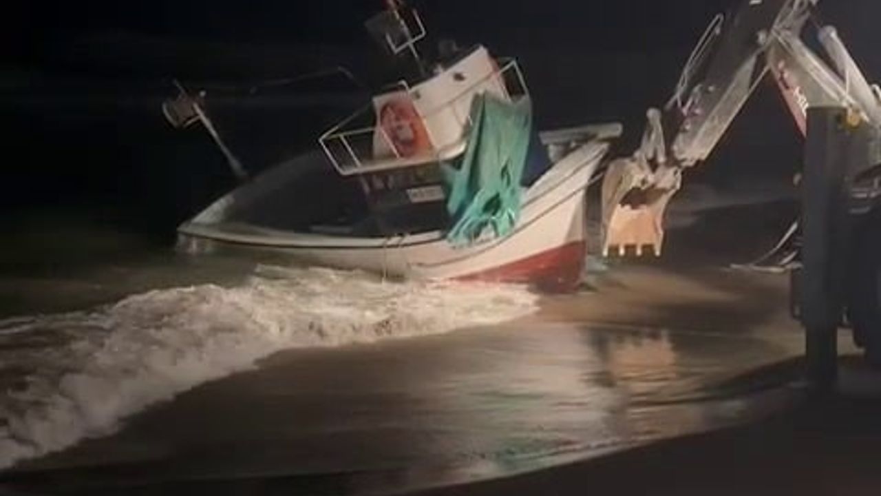 Sakarya’nın Karasu ilçesinde Sakarya Nehri ağzına girmeye çalışan 8 metrelik balıkçı teknesi karaya oturdu. Rüzgar ve dalgaların etkisiyle parçalanma tehlikesi geçiren tekne, iş makinesi yardımıyla kurtarıldı.