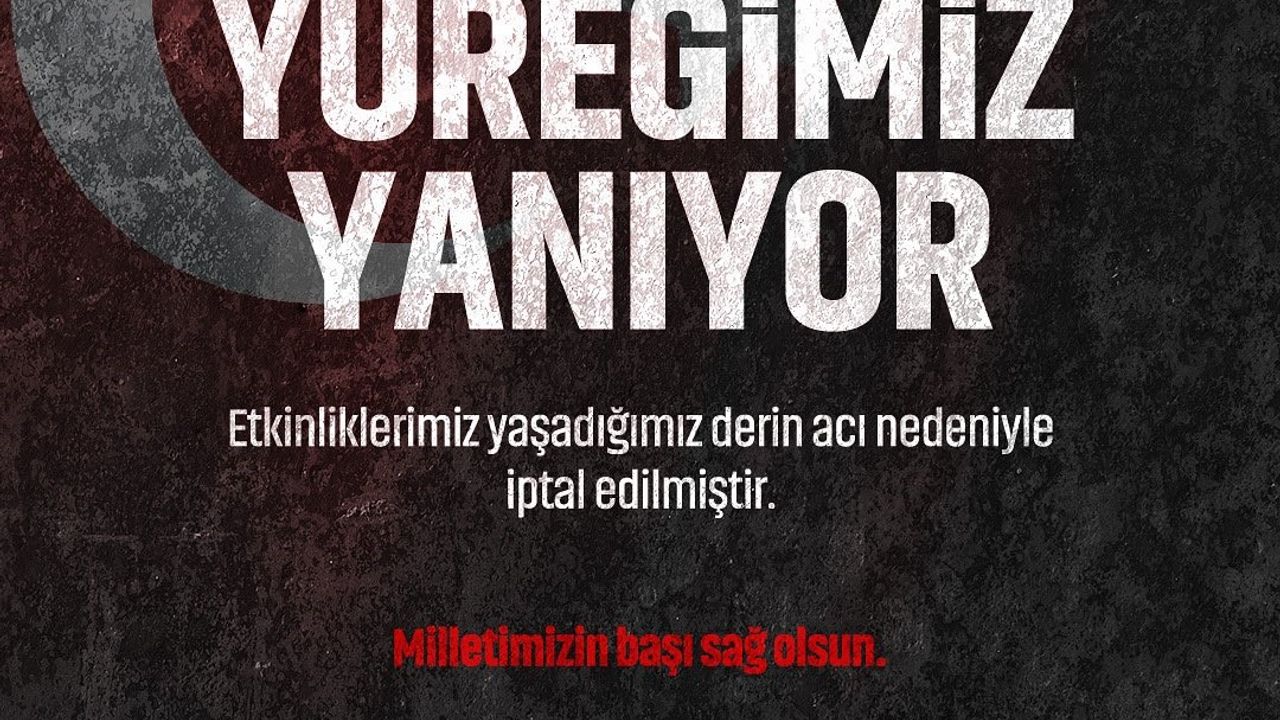 İptal edilen programlar arasında, Sakarya Üniversitesi ile iş birliğinde bugün saat 19.00’da Turgut Özal Kültür ve Kongre Merkezi’nde gerçekleştirilmesi planlanan "Aile Yılı Açılış Töreni", Uluslararası Öğrenciler Dans Gösterisi ve Mikrofon Sende etkinlikleri de bulunuyor. Üniversite’den yapılan açıklamada, "Aile Yılı Etkinlikleri" kapsamında bugün saat 19.00’da Sakarya Üniversitesi Turgut Özal Kültür ve Kongre Merkezinde gerçekleştirilmesi planlanan Açılış Töreni ile Uluslararası Öğrenciler Dans Gösterisi ve Mikrofon Sende programı, şehit ve yaralılarımız olması nedeniyle iptal edilmiştir. Yürüyüş yolu üzerindeki atölye ve etkinlikler ise saat 19.00 itibarıyla başlayacaktır" denildi.