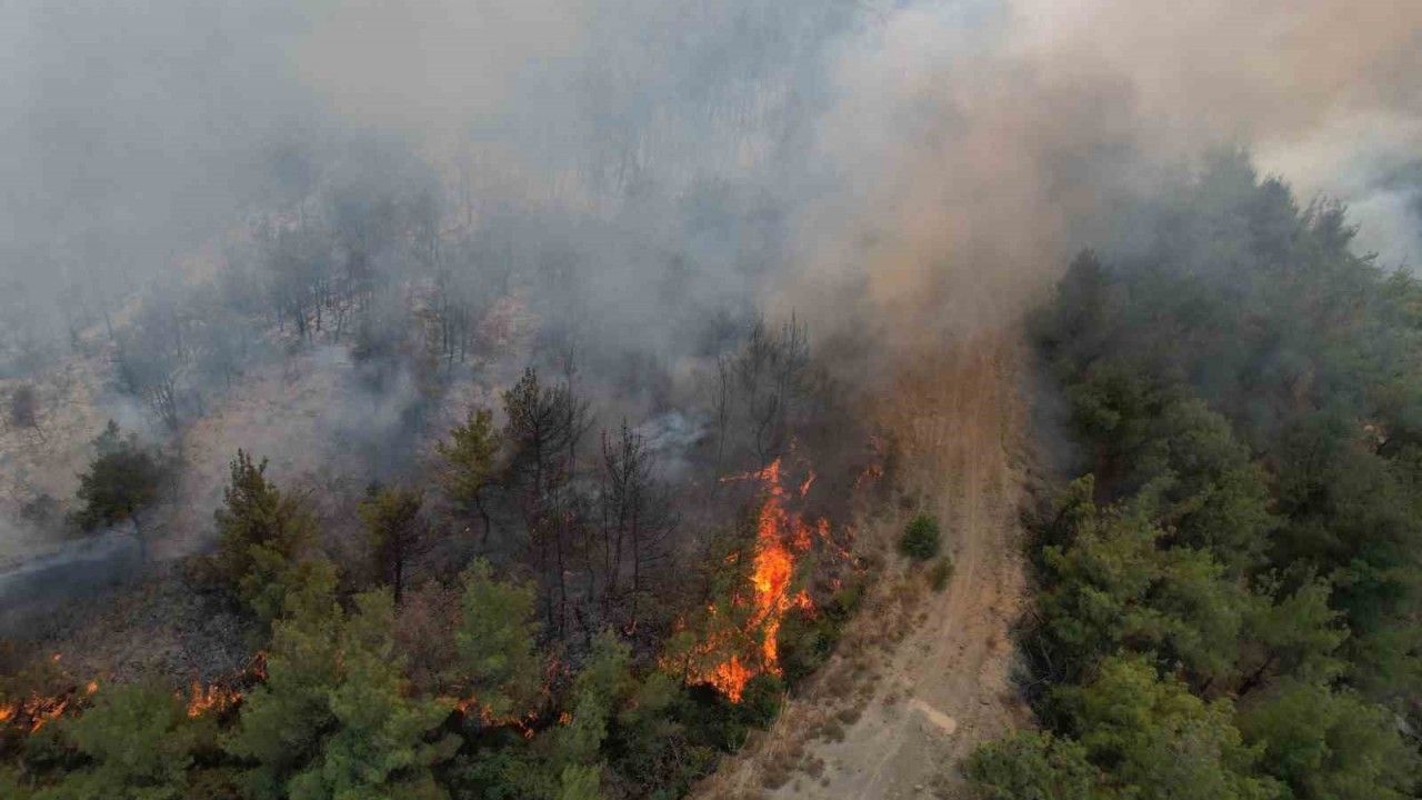 Aradan geçen yaklaşık 45 saatin sonunda gökyüzünün beyaz dumanla kaplandığı ormanlık alanın bazı bölgelerinde ise yeniden alevlenme görünüyor. Ekipler, yangını kontrol altına almak için çalışmalarına devam ederken alevlenene bölge havadan görüntülendi.