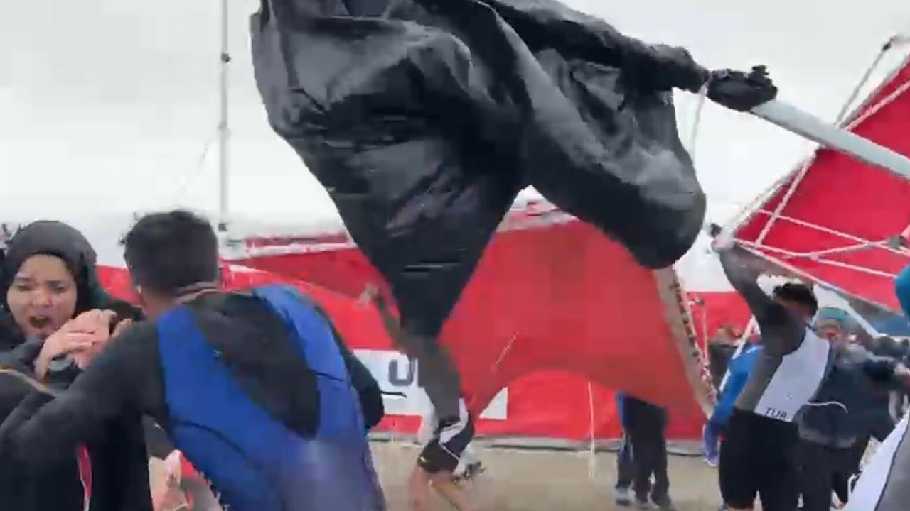 Burdur'un Yeşilova ilçesinde bulunan Salda Gölü'nde yapılan Salda Duatlonu Türkiye Kupası'na şiddetli rüzgar sahne oldu. Rüzgar nedeniyle çadırlar ve demir bariyerle uçarken sporcular zor anlar yaşadı.