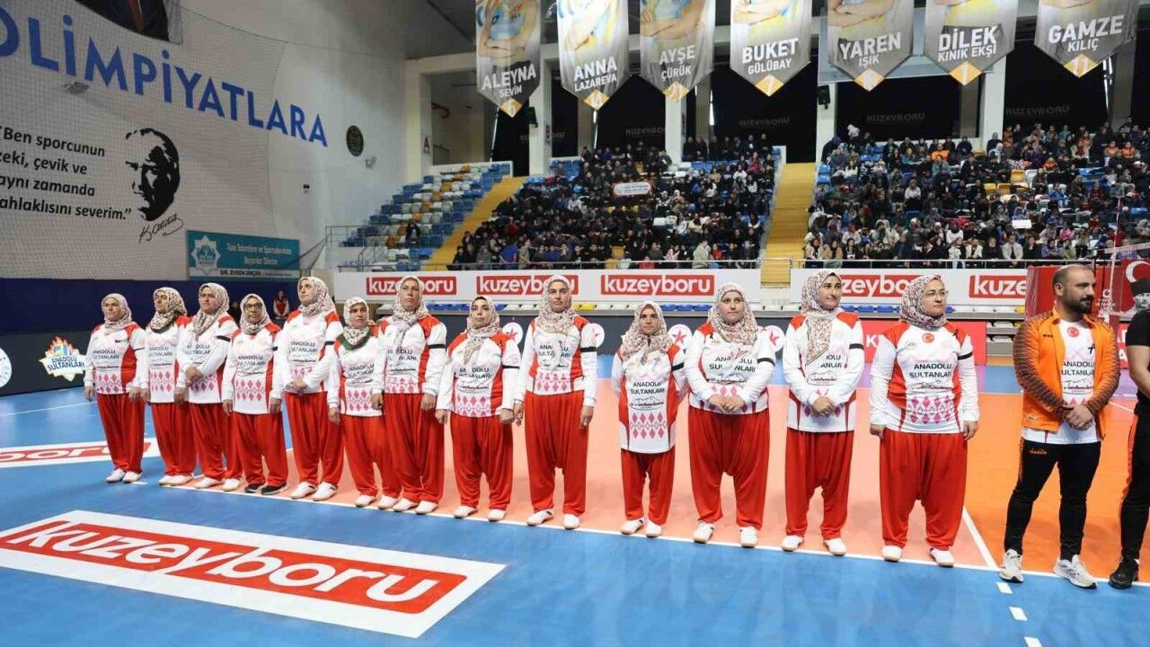 Aksaray Koçpınar Elmacık köyündeki ilkokul öğrencilerinin annelerinden oluşan şalvarlı voleybol takımı, bugün Kuzeyboru ile karşı karşıya geldi. 6 Şubat depremi anısına oynanan voleybol maçı maç 1-1 berabere bitti.