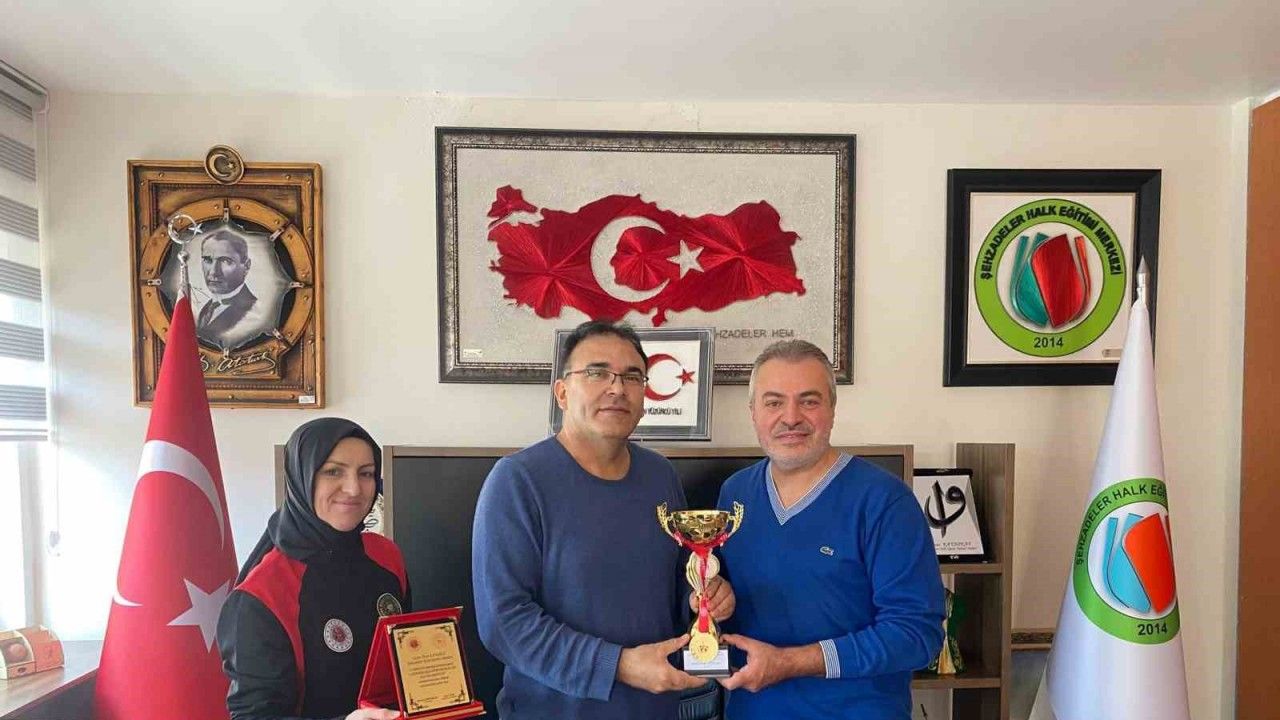 Manisa’nın Saruhanlı ilçesinde düzenlenen 6. Geleneksel İller Arası Halk Eğitimi Kurumları Muaythai Şampiyonası’nda Gençler ve Elitler kategorisinde takım halinde şampiyon olan Şehzadeler Halk Eğitimi Merkezi’ne kupası takdim edildi.