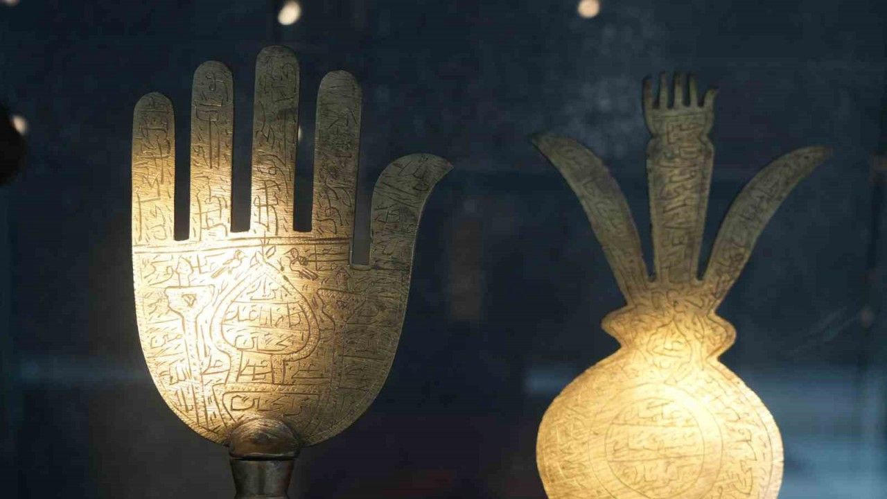 Geç Osmanlı Dönemi’ne ait hamaylı ve gümüş muskaların yer aldığı alanda yapılan bilgilendirmede, "İnsanı kötü güçlerden koruduğuna ya da kısmet sağladığına inanılan taşınabilir nesnelere muska denmektedir. Hamaylı (Hamail) ise boyuna asılarak bir omuzdan koltuk altına doğru çapraz şekilde taşınan muskadır. Genellikle küçük kutu ya da tüp şeklinde olan bu nesnelerin içine, kağıt veya deri üzerine yazılmış korunma ve şifa metinleri yerleştirilmiştir. Bu metinler arasında Esmaül Hüsna, vefkler, Hûd Suresi’nin 6. ve 56. ayetleri gibi dualar yer almaktadır" ifadelerine yer verildi.