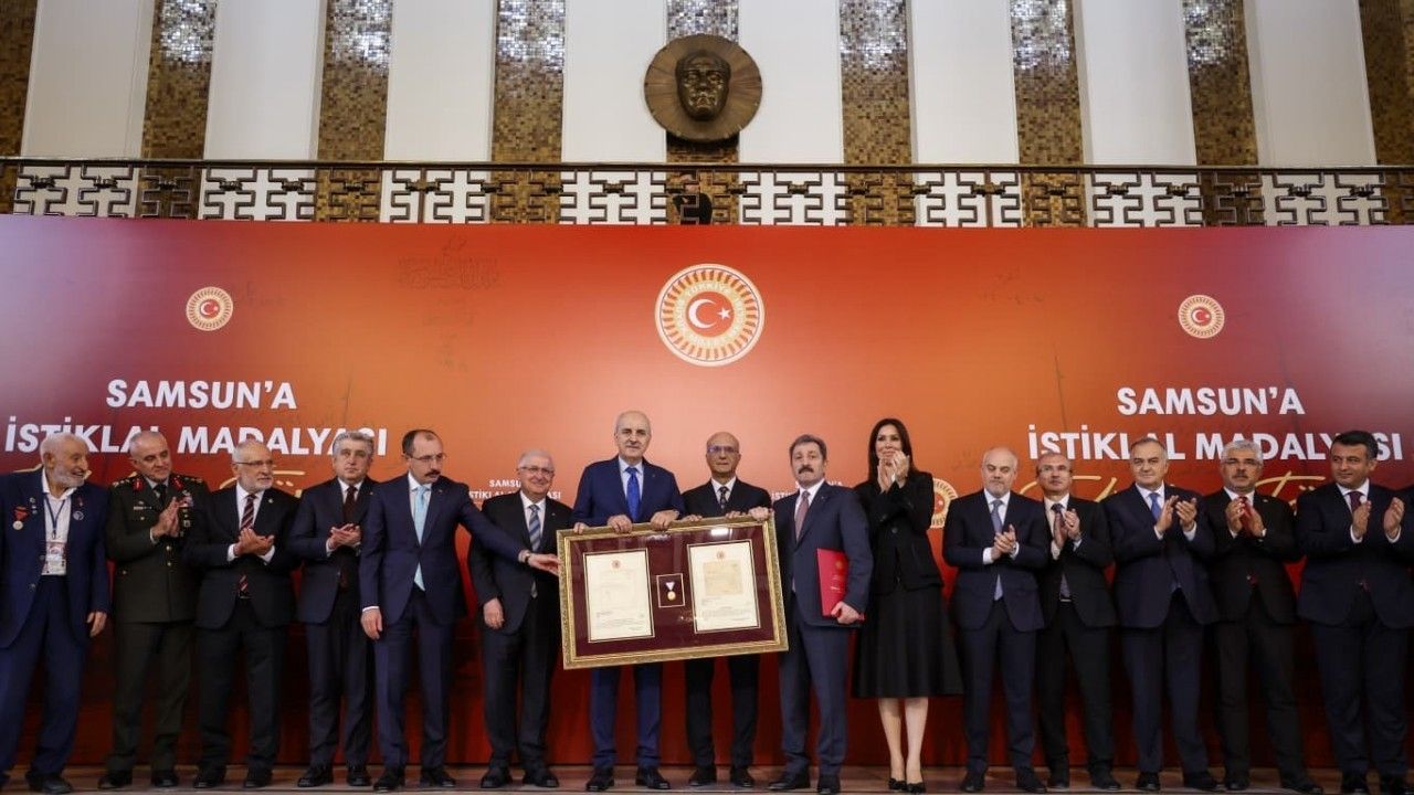 Türkiye Büyük Millet Meclisi’nde düzenlenen törenle "İstiklal Madalyası Beratı" Samsun’a takdim edildi.