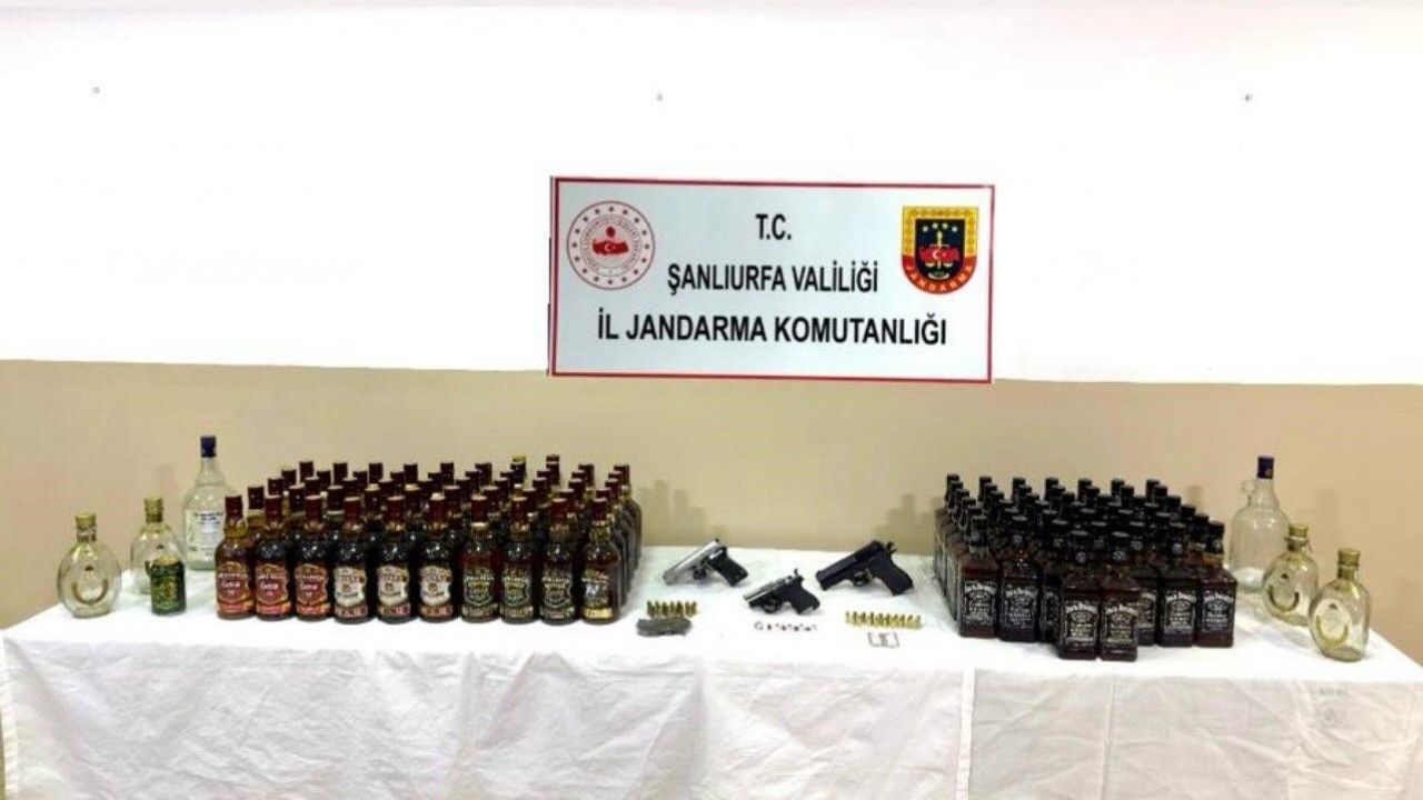 Şanlıurfa’da jandarma ekipleri tarafından daha önceden belirlenen adrese düzenlenen operasyonda kaçak alkol, ruhsatsız silah ve uyuşturucu madde ele geçirildi.