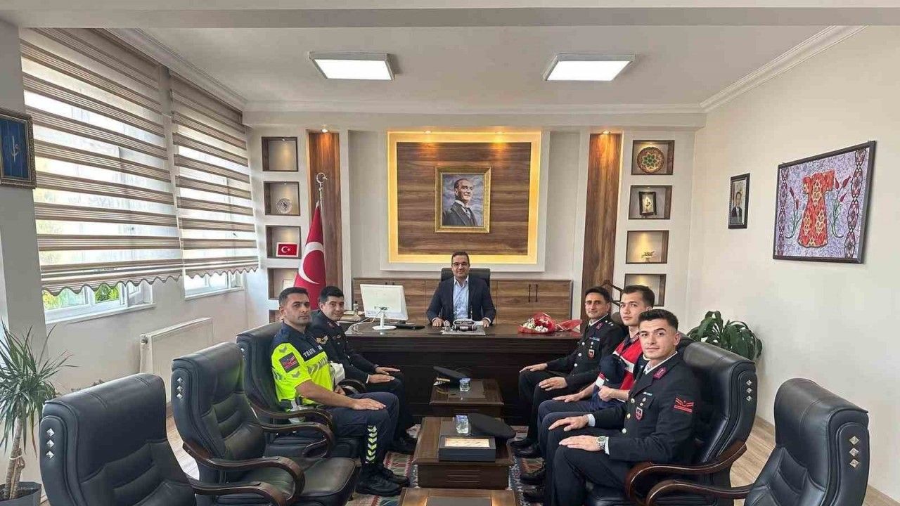 Sarıgöl Kaymakamı Halil Dalak, Jandarma Teşkilatının 186. kuruluş yıl dönümü dolayısıyla İlçe Jandarma Komutanı ve jandarma ekibini makamında ağırladı.