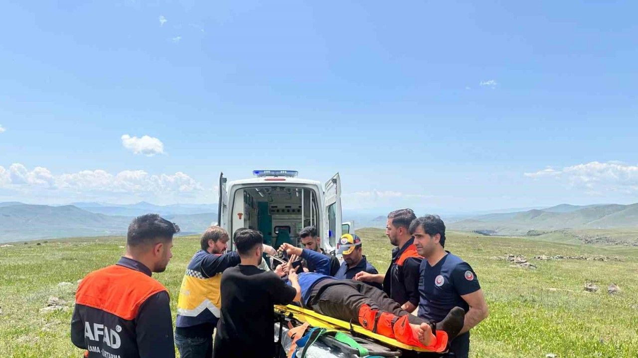 Sarıkamış’ta kayalıktan düşen çobanın ayağı kırıldı.