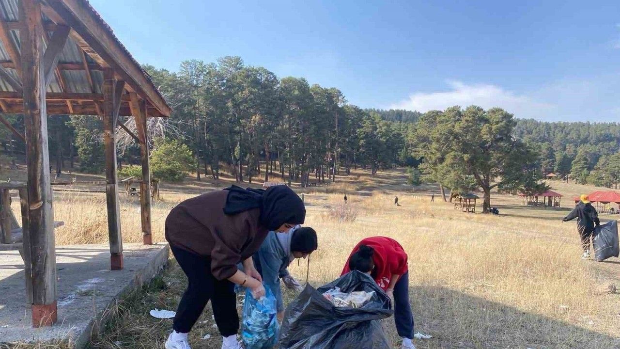 Sarıkamış’ta üniversite öğrencilerinden çevre seferberliği, öğrenciler sarıçam ormanlarını atılan çöpleri topladı.