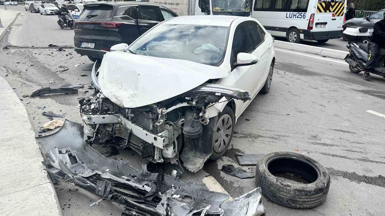 İstanbul Sarıyer'de kontrolden çıkarak karşı şeride geçen otomobil zincirleme kazaya neden oldu. Üç otomobil ve bir servis minibüsünün karıştığı kazada 4 kişi yaralandı.
