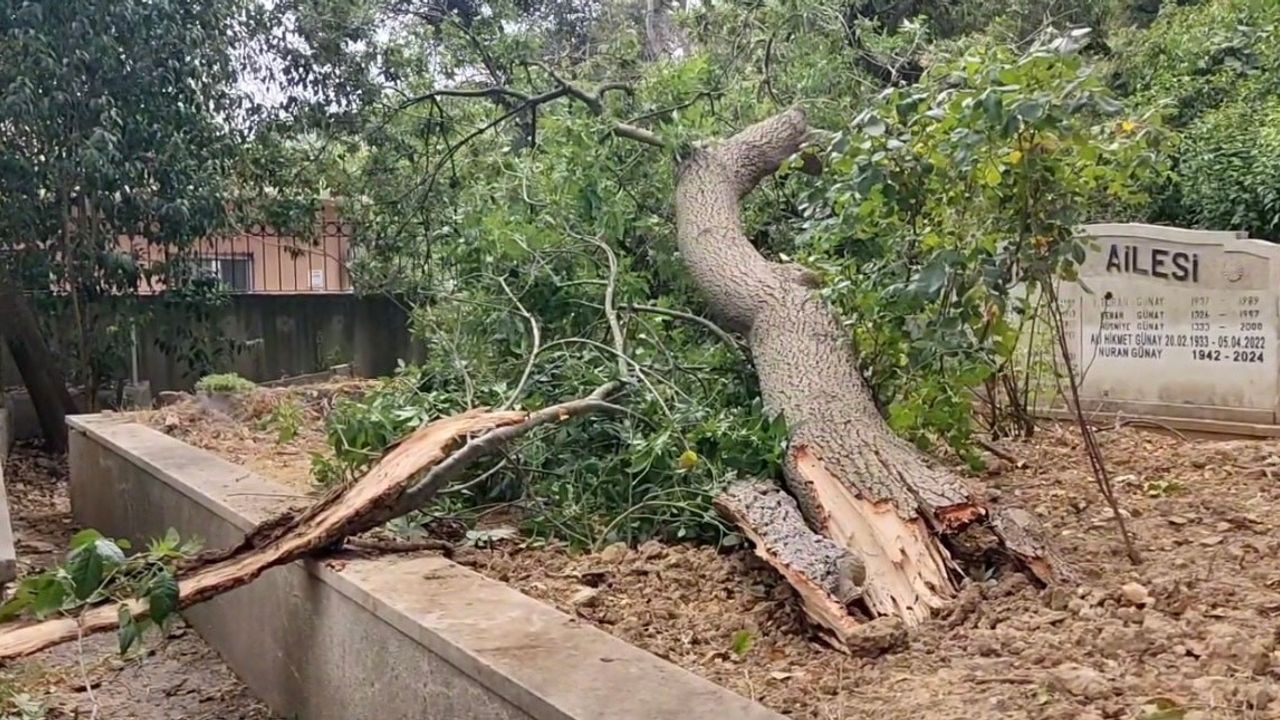 İstanbul Sarıyer’de yaş bir ağaç ortasından kırılarak mezarlıkların üzerine devrildi. Olay esnada mezarlıkta kimsenin olmaması muhtemel facianın önüne geçti.