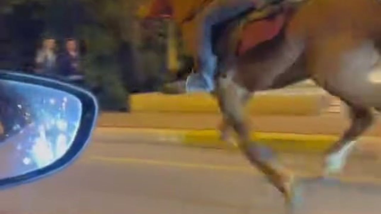 Sakarya’nın Serdivan ilçesinin en işlek caddesinde otomobillerin arasında atla dörtnala giden şahıs görenleri hayrete düşürdü.