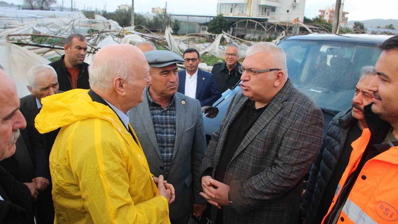 Genel Başkan Şemsi Bayraktar, Mavikent Mahallesi'nin ardından selden zarar gören Karşıyaka ve Kum mahallelerinde de incelemelerde bulunarak Kumluca'dan ayrıldı.