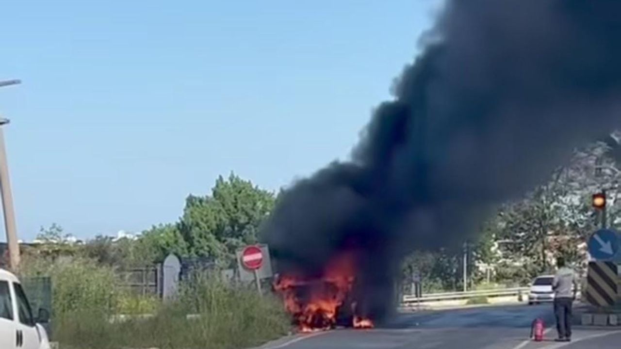 Edinilen bilgiye göre Kuşadası’nda yolda seyreden 5 yıldızlı bir otele ait 35 KJP 71 plakalı çarşaf yüklü kamyonet, Soğucak Kavşağı’na geldiği sırada elektrik aksamından kaynaklı yaşanan arıza nedeniyle motor bölümünden alev aldı. Alevleri farkeden eden sürücü, aracı yol kenarına çekip, durumu polis ve itfaiye ekiplerine bildirdi. Kısa sürede olay yerine gelen itfaiye ekipleri alev topuna dönen kamyoneti söndürdü. Yangında araç kullanılamaz hale geldi.