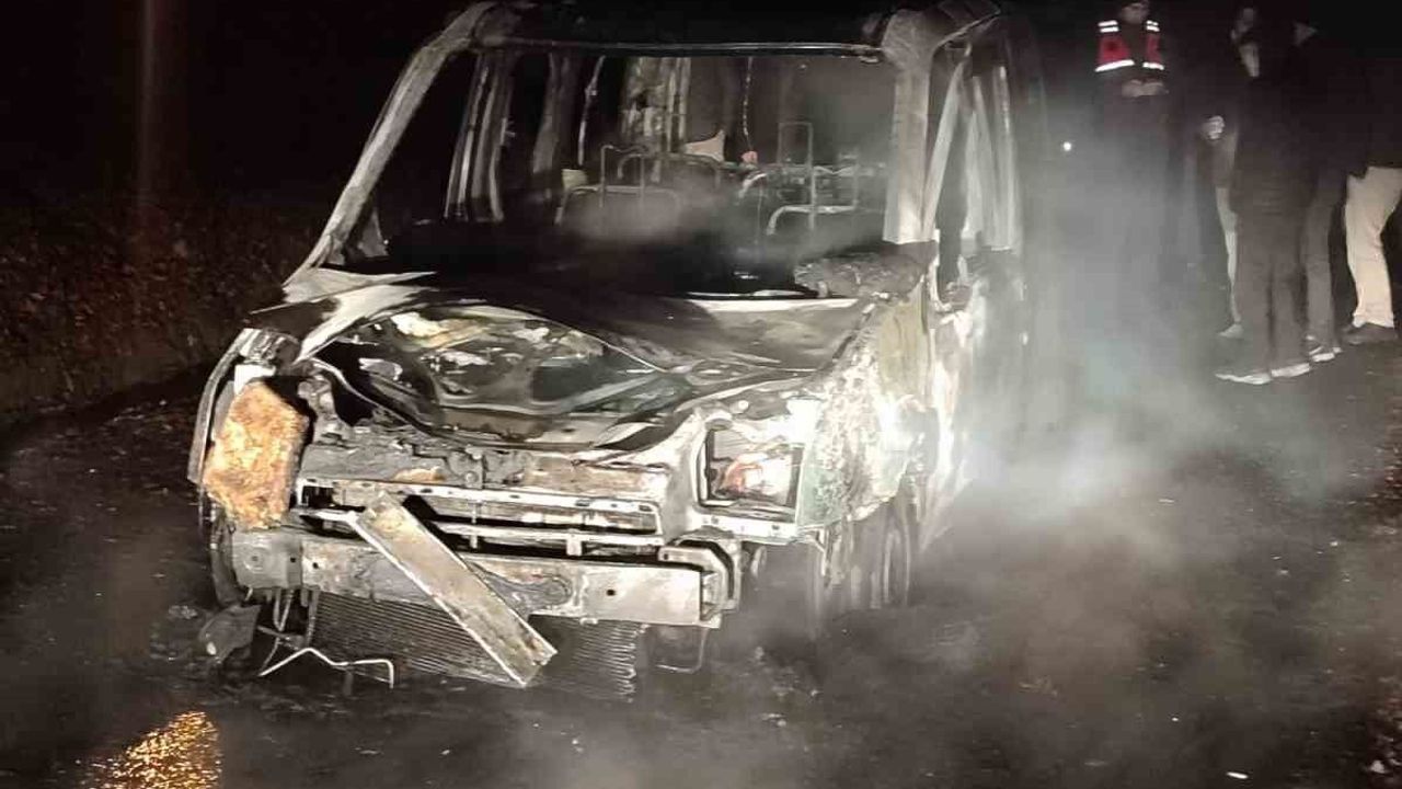 Karabük'ün Yenice ilçesinde seyir halindeyken alev alan hafif ticari araç tamamen yanarak kullanılmaz hale geldi.