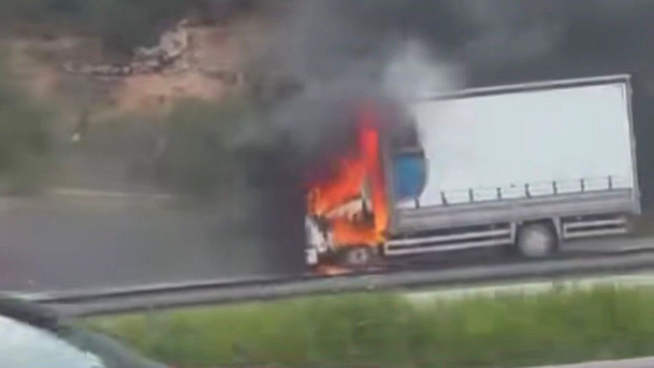 Edinilen bilgiye göre, seyir halindeki bir kamyon henüz belirlenemeyen bir nedenle alev aldı. Kısa sürede büyüyen yangın kamyonu tamamen sararken, sürücü aracı yol kenarına çekerek kendini dışarı attı. İhbar üzerine olay yerine itfaiye ekipleri sevk edildi. Ekiplerin hızlı müdahalesiyle yangın kontrol altına alınarak söndürüldü.
