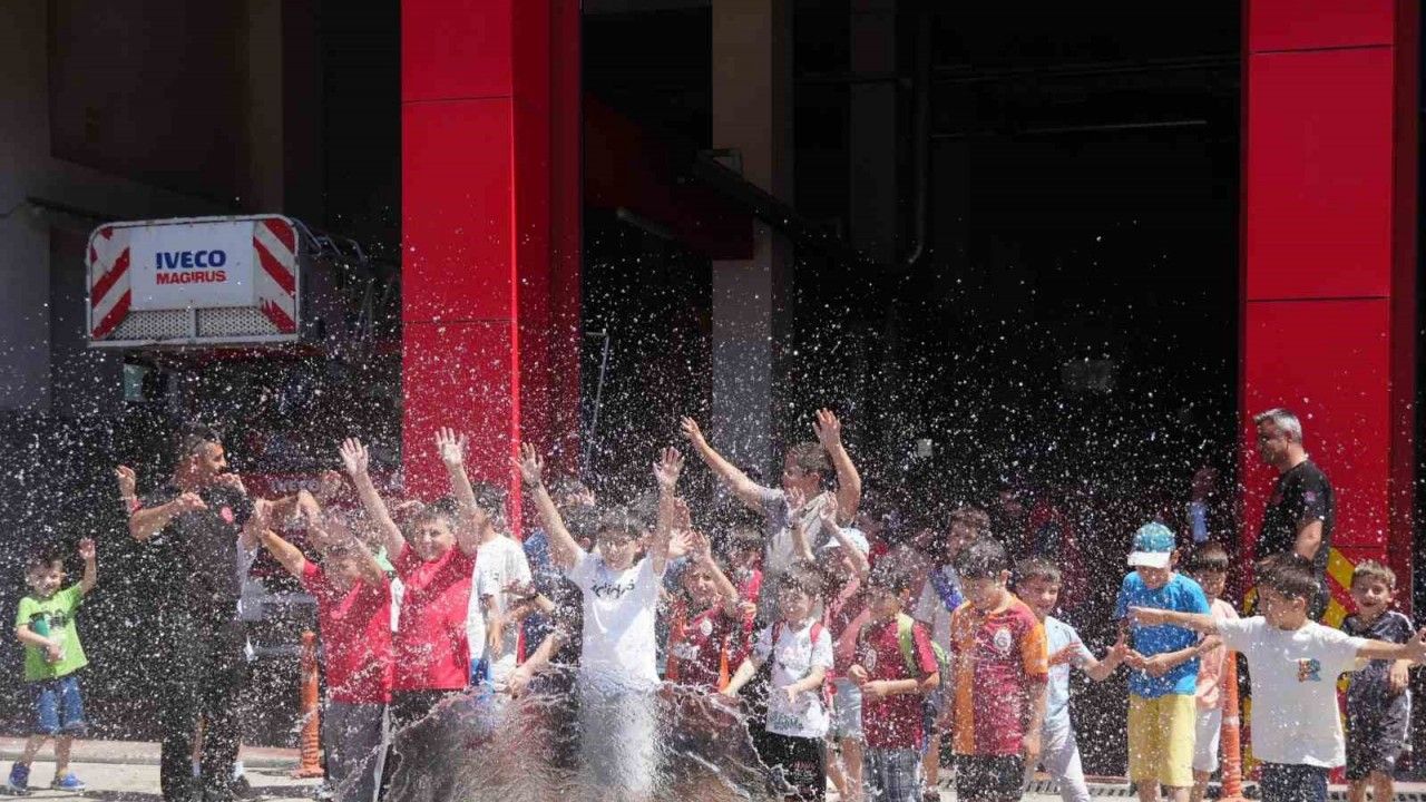 İtfaiye Müdürü Mehmet Ali Kahraman’ın da hazır bulunduğu ziyarette, itfaiye araçlarını ve itfaiye personelinin kullandığı aletleri inceleyen çocuklar daha sonra yangına müdahale tekniklerini uygulamalı öğrendi.