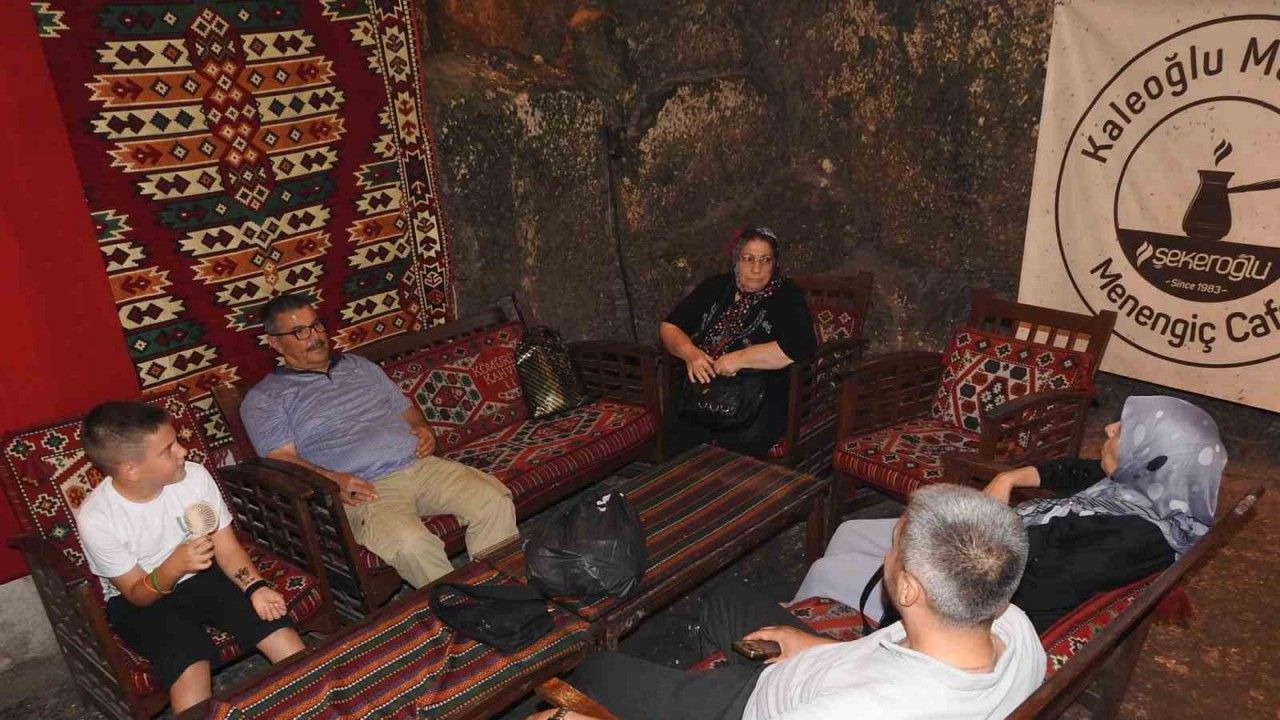 Hava sıcaklığının bazen 40 dereceyi bulduğu kentte, yerli ve yabancı turistler doğal serinliği nedeniyle mağaradaki kafeye geliyor.