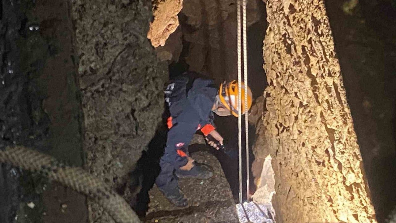 Deniz Limanı Şube Müdürlüğüne Bağlı Gemi Adamları ekipleri, hava koşullarından dolayı mağaraya botla giremese de, bir kurbağa adam dev dalgalar olmasına karşın yüzerek mağaraya ulaştı. Ardından mahsur kalan kadına üşümemesi için polis dalgıç kıyafeti veren kurbağa adam, kara ekipleri ulaşıncaya kadar da gençlere refakat etti.