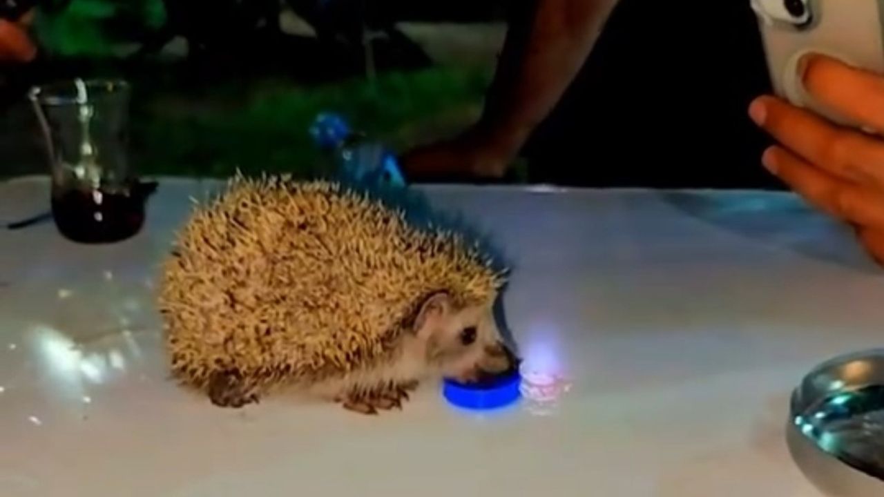 Siirt’in Kurtalan ilçesinde sıcak havadan bitkin düşen kirpiye su veren vatandaşlar, örnek bir davranış sergiledi.