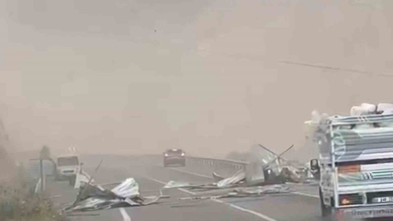 Siirt-Eruh karayolunda şiddetli rüzgar çatıyı savurdu, yol trafiğe kapandı.