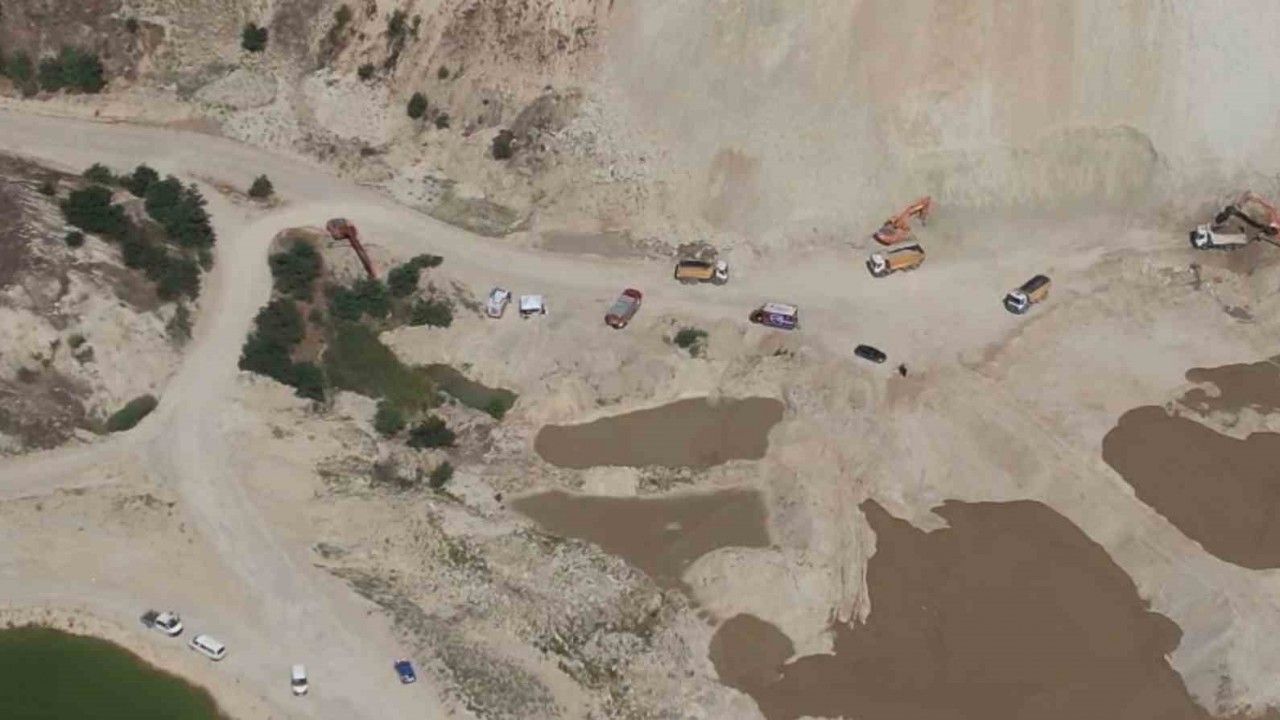 İstanbul Silivri’de bir kum ocağında dün öğle saatlerinde meydana gelen göçük sonrası bir işçi balçık altında kaldı. İşçiyi kurtarma çalışmaları devam ederken, ekiplerin çalışması havadan görüntülendi.