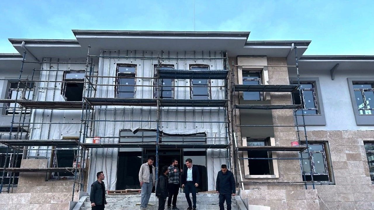 Kaba ve ince inşaat işleri biten, peyzaj ve çevre düzenleme çalışmaları ise devam eden yeni hizmet binasının inşaat alanında incelemelerde bulunan Simav Kaymakamı Bünyamin Karaloğlu, yüklenici firma yetkililerinden ve kontrol mühendislerinden çalışmaların son durumu hakkında bilgi aldı.