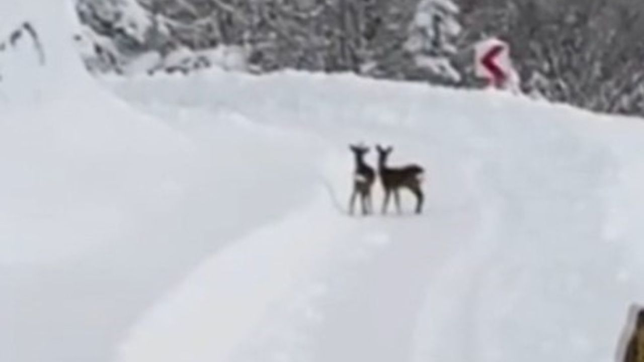 Ekipler, kar kalınlığının yer yer 1 metreye ulaştığı bölgede iş makineleriyle yol açtığı sırada sürpriz misafirlerle karşılaştı. Ormanlık alandan yola çıkan karacalar, metrelerce karın içerisinde adeta birbirleriyle yarışarak koşmaya başladı. Karacaların kar üzerindeki sevinç dolu anları, çalışmaları sürdüren personeller tarafından saniye saniye kaydedildi.