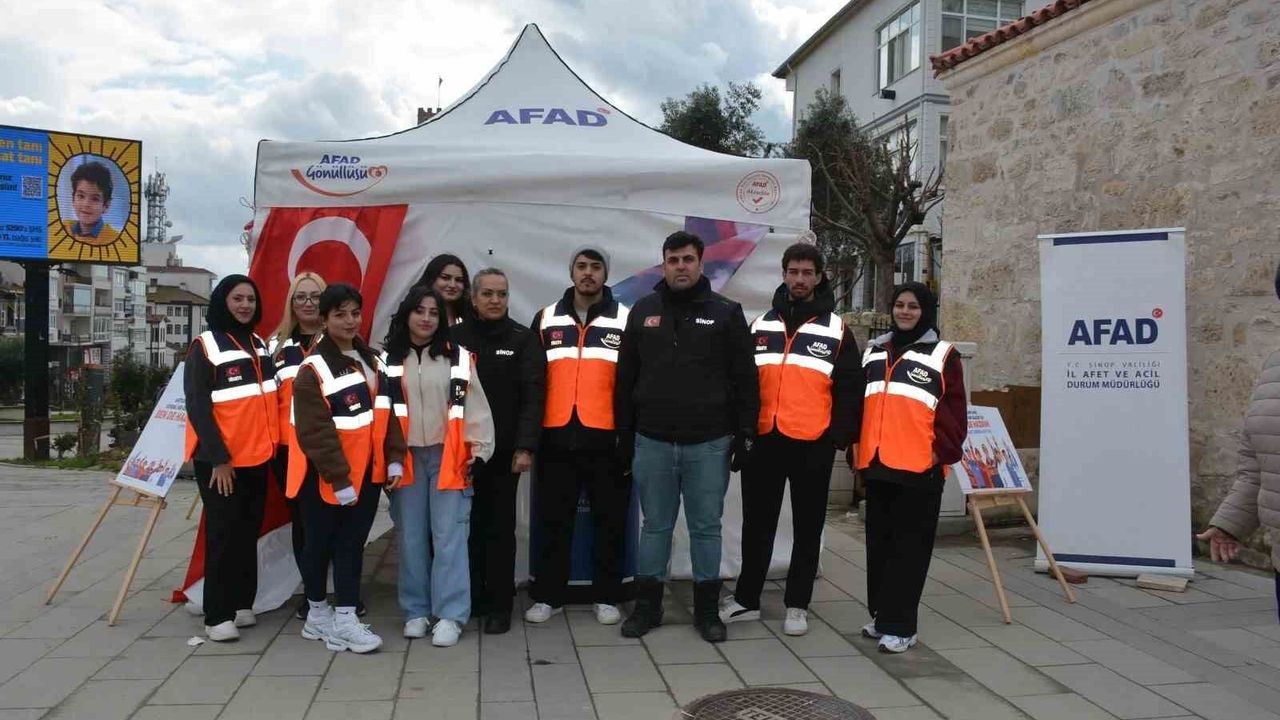 Sinop'ta '1-7 Mart Deprem Haftası' etkinlikleri çerçevesinde, vatandaşları afetlere karşı bilinçlendirmek amacıyla Sakarya Caddesi girişinde bilgilendirme standı açıldı.