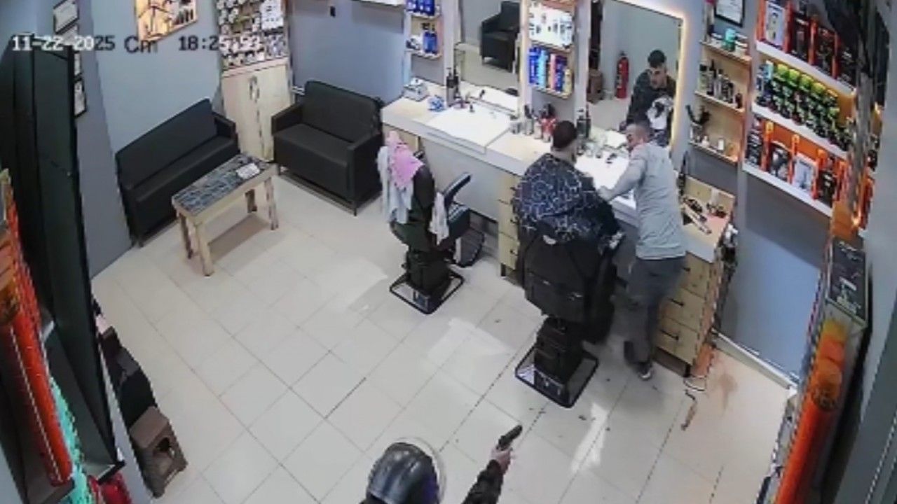 Sinop’un Ayancık ilçesinde motosikletli 2 kişi, berber dükkanına silahlı saldırı düzenledi. Berberin bacaklarından yaralandığı olay kameraya yansıdı.