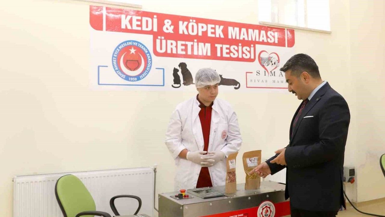 Erdoğan, Sıfır Atık Projesi kapsamında, kullanım dışı kalmış gıda maddelerinin çeşitli aşamalardan geçirdikten sonra kedi ve köpek maması olarak tekrar kullanıma kazandırılması amacıyla okul bünyesinde oluşturulan kedi ve köpek maması üretim tesisini de ziyaret etti. Marka tescili alınarak üretimi yapılan ve Sivas Mama (SİMA) adıyla okulun döner sermaye işletmesi üzerinden satışa sunulan mamaların ar-ge, üretim ve pazarlama süreçleri hakkında bilgi alan Erdoğan, projenin hayata geçirilmesinde emeği olan okul idarecilerini, öğretmenleri ve öğrencileri tebrik etti. Erdoğan, hayvan sağlığı ve yetiştiriciliği alanında gerçekleştirilen diğer ar-ge ve üretim çalışmalarını da yerinde inceleyerek bilgi aldı.