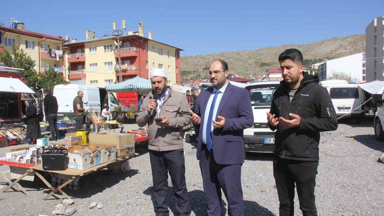 Sivas’ın Zara ilçesinde haftada bir gün kurulan semt pazarında, alış verişe dualarla başlanılıyor.