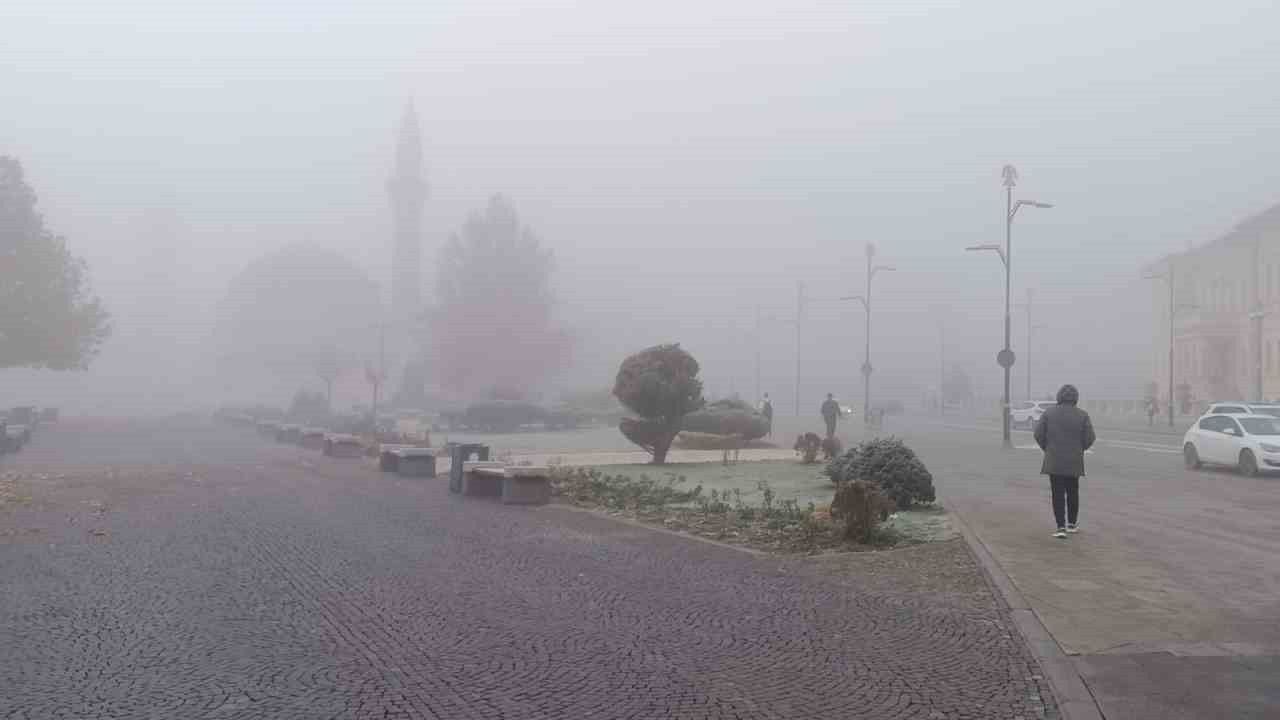 Sivas’ta sıcaklıkların eksi 3 dereceye düşmesiyle birlikte kent, görüş mesafesini neredeyse yok eden yoğun sis örtüsünün altında kaldı.