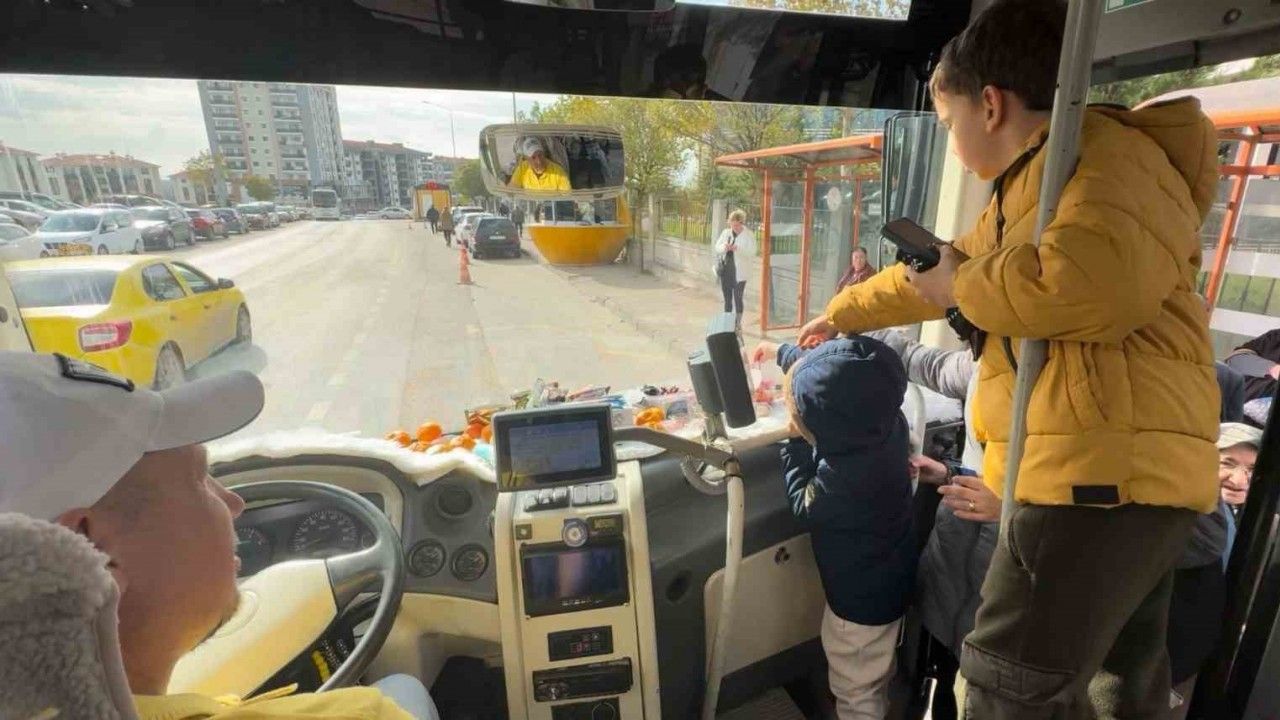 Edirne’de bir minibüs şoförü yolcularına meyve ve çeşitli şekerlemeler ikram etmeye başladı.