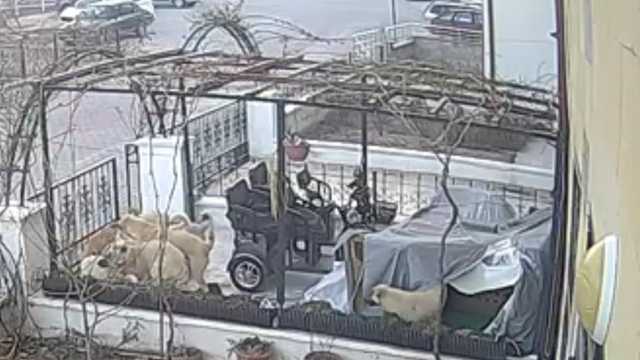 Nevşehir’de sokak köpeklerinin saldırısına uğrayan kedi telef oldu. O anlar bir evin güvenlik kameralarına yansıdı.