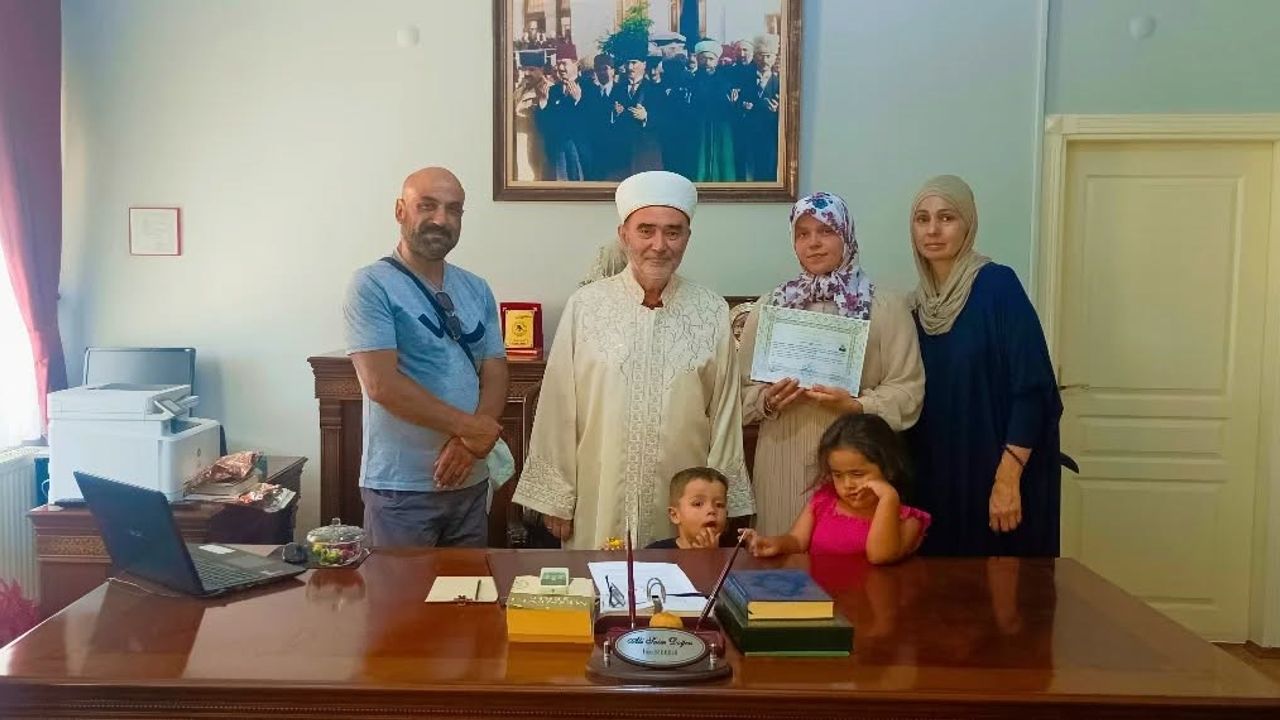 Aydın’ın Söke ilçesinde, Müslüman olmak isteyen Samantha Maria Muters için Söke İlçe Müftülüğü’nde ’İhtida Merasimi’ gerçekleştirildi.