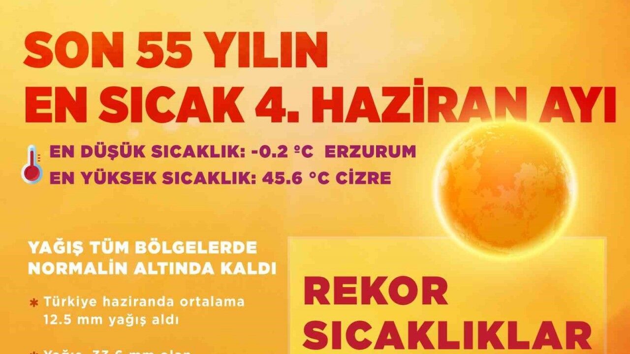 Çevre, Şehircilik ve İklim Değişikliği Bakanlığı Meteoroloji Genel Müdürlüğü raporlarına göre 2025 yılı Haziran ayı son 55 yılın en sıcak 4’ncü haziran ayı olarak kayıtlara geçti. En düşük sıcaklık-0.2 derece ile Erzurum’da, en yüksek sıcaklık 45.6 derece ile Cizre’de gerçekleşti.