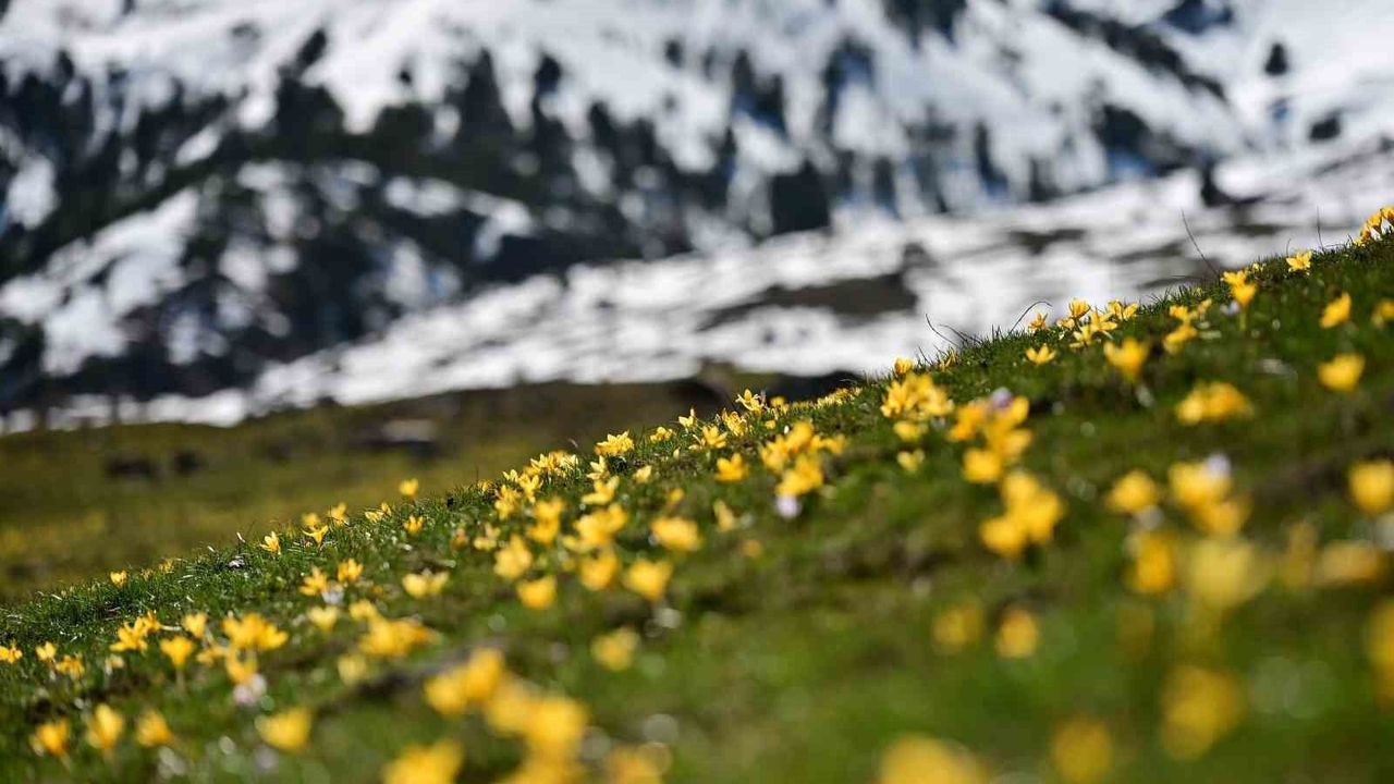 Karların ardından fışkıran bu renkli çiçekler, vadi boyunca metrelerce uzanan doğal bir halı görüntüsü oluşturarak görenleri kendine hayran bıraktı.