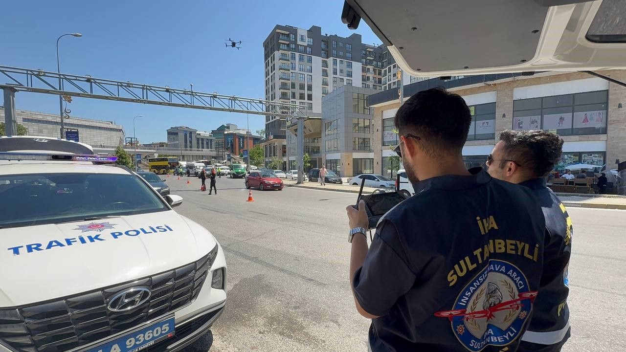 Trafik uygulaması sırasında bölge dron ile de havadan görüntülendi. Görüntülerde hem trafik akışının kontrolü hem de sürücülerle kurulan sıcak diyalog dikkat çekti.