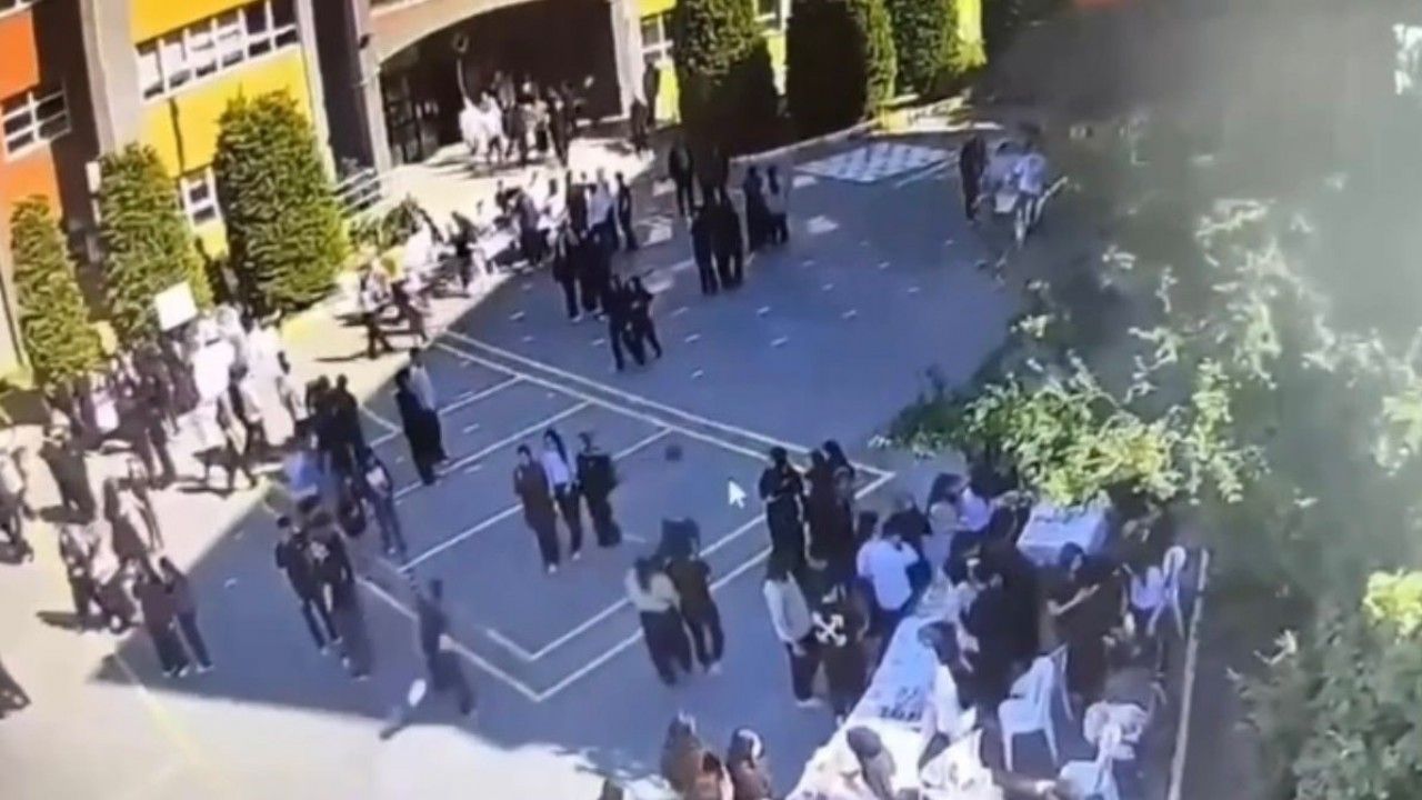 Sultanbeyli’de lise öğrencisi aralarında husumet bulunduğu öne sürülen arkadaşını okul bahçesinde bıçakla yaraladı. O anlar güvenlik kamerasına yansıdı.